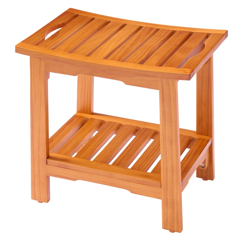 18-Inch Solid Wood Bathroom Stool with Shelf | Shower & Vanity
