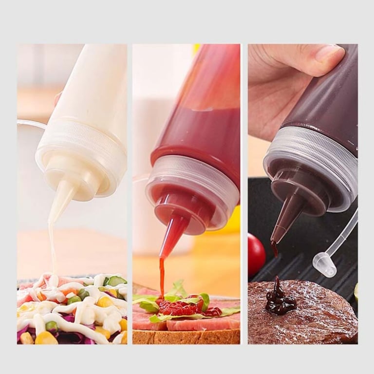 <p>Tired of messy condiment bottles and wasteful squeezing? Our 8-pack squeeze sauce bottles deliver precision dispensing for every kitchen task, from plating restaurant-quality meals to organizing your home pantry with professional-grade control.</p><ul><li><strong>Crystal-Clear Visibility</strong> — Translucent plastic construction with printed measurement markings lets you monitor contents at a glance and refill before running empty mid-service</li><li><strong>Leak-Proof Nozzle Design</strong> — Integrated white screw-on caps with attached protective covers prevent accidental spills and keep sauces fresh longer than open containers</li><li><strong>Generous 500ml Capacity</strong> — Each bottle holds enough condiment for multiple meals or service shifts, reducing refill frequency and maximizing prep efficiency</li><li><strong>Bulk Value Set</strong> — Eight bottles allow simultaneous storage of different sauces, dressings, oils, and syrups without cross-contamination or label confusion</li><li><strong>Durable Mid-Range Construction</strong> — Food-safe plastic withstands daily commercial and home kitchen use, dishwasher-safe for quick cleaning between applications</li></ul><p><strong>Perfect for:</strong> Home cooks experimenting with plating techniques, small restaurant owners managing multiple condiments, catering businesses needing portable sauce stations, and meal-prep enthusiasts organizing weekly condiment batches.</p><p>Made from food-grade plastic with BPA-free materials. Each bottle features ergonomic squeeze handles designed for comfortable, controlled dispensing without hand fatigue.</p><p>✅ Fast shipping across Canada · 30-day returns · Secure checkout</p><p>Stock limited — home cooks and restaurant owners are ordering these weekly for their efficiency gains.</p>