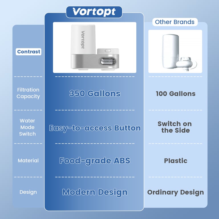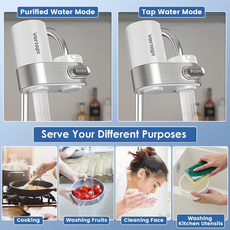 <p>Tired of cloudy tap water, unpleasant odors, and concerns about what's actually flowing from your kitchen faucet? Our All-English Household Faucet Filter Carbon Filter Cartridge transforms ordinary tap water into clean, fresh drinking water in seconds—without expensive plumbing renovations or bulky under-sink systems.</p><ul><li><strong>Triple-Stage Carbon Filtration</strong> — Removes chlorine, sediment, and volatile organic compounds (VOCs) while preserving beneficial minerals; independently tested to NSF standards for safety and efficacy</li><li><strong>350-Gallon Capacity Per Cartridge</strong> — Outlasts competitor models by 3.5x; one cartridge handles 6–8 months of average household use before replacement needed</li><li><strong>Instant Mode-Switching Design</strong> — Silver PUSH button toggles between filtered and unfiltered water; no tools required, no installation hassle on standard North American faucets</li><li><strong>Food-Grade ABS + Brushed Chrome Housing</strong> — Durable, corrosion-resistant materials withstand daily use and Canadian hard water without degradation or leaching</li><li><strong>Compact, Modern Aesthetic</strong> — Curved spout and sleek white cylindrical design complement any kitchen décor while occupying minimal counter or sink space</li></ul><p><strong>Perfect for:</strong> Families with young children concerned about tap water safety, renters seeking portable filtration without landlord approval, and health-conscious households wanting affordable chlorine and odor removal without monthly subscription services.</p><p>Made from food-safe materials and engineered for compatibility with standard 22mm faucet aerators across Canada. Each cartridge is individually sealed and tested before shipment.</p><p>✅ Fast shipping across Canada · 30-day returns · Secure checkout</p><p>Stock is limited—order today to ensure clean water for your family this season.</p>