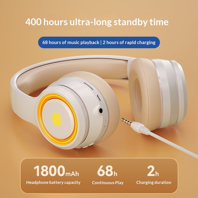 Fashionable On-Ear Bluetooth Wireless Headphones with RGB Lighting