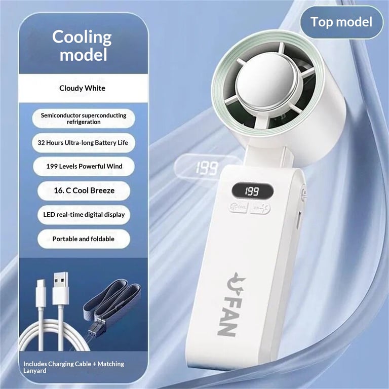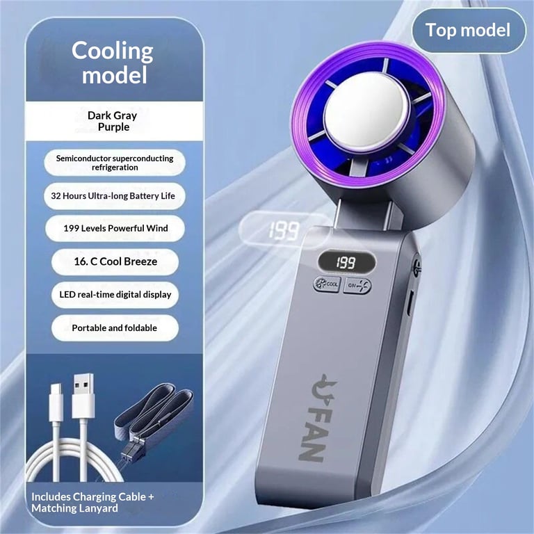 <p>Beat the heat with a personal cooling solution that combines semiconductor refrigeration technology with a powerful handheld fan—no more sweating through your workday, commute, or outdoor adventures. This innovative ice pack fan delivers instant relief wherever you are, keeping you cool and comfortable all day long.</p><ul><li><strong>Semiconductor Refrigeration System</strong> — Advanced cooling technology drops air temperature by up to 15°C below ambient, providing genuine relief beyond standard fans</li><li><strong>Extended 30-32 Hour Battery Life</strong> — Single charge lasts through multiple days of use, eliminating constant recharging frustrations on the go</li><li><strong>199 Adjustable Speed Levels</strong> — Digital display lets you fine-tune airflow intensity from gentle breeze to powerful cooling blast based on your comfort needs</li><li><strong>Three Usage Modes</strong> — Switch seamlessly between handheld grip, foldable desktop stand, and neck lanyard configurations for maximum versatility</li><li><strong>Lightweight Portable Design</strong> — Compact plastic construction weighs under 200g, fitting easily into bags, backpacks, or desk drawers without bulk</li></ul><p><strong>Perfect for:</strong> Office workers battling summer heat waves, outdoor enthusiasts hiking in hot climates, travelers needing personal AC in transit, and students studying in non-air-conditioned spaces.</p><p>Durable plastic construction with modern pastel color options (white, purple, pink) and intuitive button controls. Ships fast across Canada with our 30-day satisfaction guarantee.</p><p>✅ Fast shipping across Canada · 30-day returns · Secure checkout</p><p>Stock is limited—grab yours before summer demand peaks.</p>