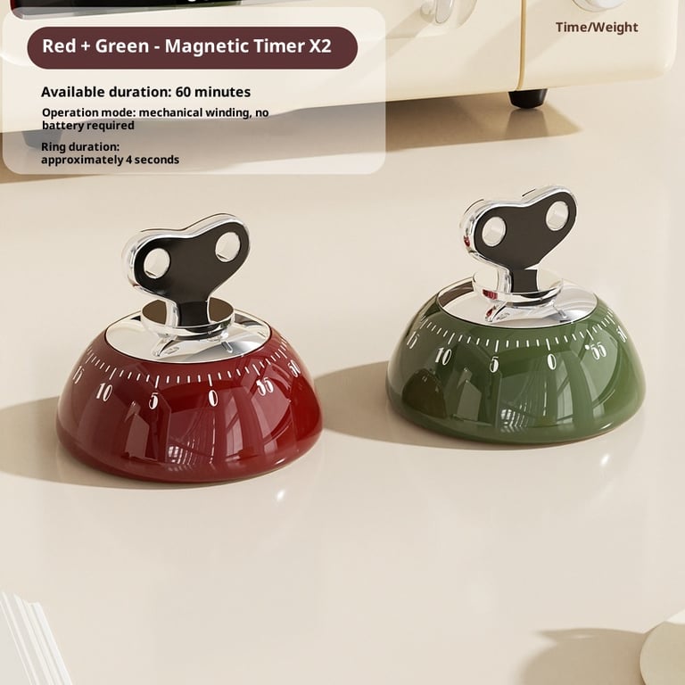 <p>Tired of burnt cookies and overcooked pasta because your phone timer got buried in notifications? Our Kitchen Magnetic Timer Lite-Luxury Precise Countdown delivers old-school reliability with modern convenience—no batteries, no distractions, just pure timing accuracy.</p><ul><li><strong>Wind-Up Mechanical Precision</strong> — 60-minute countdown with audible alarm; mechanical movement ensures accuracy without electronic drift or battery drain</li><li><strong>Powerful Magnetic Base</strong> — Stainless steel magnetic backing grips refrigerators, ovens, and metal surfaces instantly; repositionable without residue</li><li><strong>Retro Aesthetic Design</strong> — Vintage-inspired body in cream, red, or green; compact 6.5cm height fits seamlessly into modern or farmhouse kitchens</li><li><strong>Battery-Free Operation</strong> — Wind once, set, and go; eliminates dead battery frustration and reduces kitchen clutter from charging cables</li><li><strong>Durable Plastic Construction</strong> — Lightweight yet sturdy ABS plastic body withstands daily kitchen use; metallic winding key resists wear</li></ul><p><strong>Perfect for:</strong> Home bakers timing delicate soufflés, meal preppers coordinating multiple dishes, and minimalists seeking distraction-free kitchen tools.</p><p>Made with food-safe materials and engineered for Canadian kitchens. Tested for reliability across temperature and humidity variations.</p><p>✅ Fast shipping across Canada · 30-day returns · Secure checkout</p><p>Stock is moving quickly—add yours to your cart before this retro essential sells out.</p>