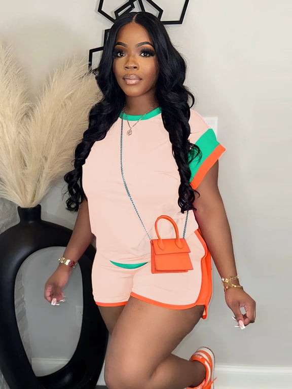 <p>Finding a coordinated casual outfit that's both comfortable and stylish shouldn't mean spending hours mixing and matching pieces. This loose-fitting two-piece set delivers effortless style with a figure-flattering silhouette that works for any body type.</p><ul><li><strong>Complete Coordinated Look</strong> — Matching short-sleeved tee and shorts eliminate guesswork; vibrant color-blocked designs (pink-orange, peach-orange, green-yellow) create instant visual interest without extra effort</li><li><strong>Loose-Fitting Comfort Design</strong> — Relaxed cut through the torso and hips provides all-day breathability while the strategic color blocking creates a flattering vertical line that elongates the silhouette</li><li><strong>Bonus Matching Mini-Purse</strong> — Included crossbody purse with long adjustable strap completes the outfit; perfect for carrying essentials on casual outings, errands, or weekend hangouts</li><li><strong>Lightweight Knit Fabric</strong> — Breathable polyester-cotton blend resists wrinkles and maintains shape through multiple washes; ideal for warm-weather layering or standalone wear</li><li><strong>Contrasting Trim Details</strong> — Color-blocked sleeve and side seam accents add dimension and movement; creates a polished, intentional look that reads more expensive than the price point</li></ul><p><strong>Perfect for:</strong> College students building affordable capsule wardrobes, young professionals seeking casual-Friday outfits, and anyone wanting Instagram-worthy looks without the designer price tag.</p><p>Crafted from quality fast-fashion materials designed for durability and easy care. Available in multiple vibrant colorways to match your personal style.</p><p>✅ Fast shipping across Canada · 30-day returns · Secure checkout</p><p>Stock is moving quickly—grab your favorite color combination before sizes sell out.</p>