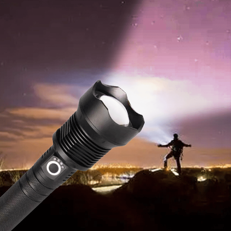 <p>When darkness falls, you need a light source you can absolutely rely on—and this powerful LED flashlight delivers the brightness and range that outdoor enthusiasts, security professionals, and emergency responders demand. With extreme lumen output and precision zoom capability, you'll illuminate targets at distances other flashlights simply can't reach.</p><ul><li><strong>Extreme brightness output</strong> — Advertised at 9900000LM with a high-efficiency reflector design that concentrates light into a focused beam for maximum visibility across vast distances</li><li><strong>Adjustable zoom function</strong> — Seamlessly transition from wide-angle flood lighting to concentrated spotlight mode, adapting to any situation from close-range work to long-distance surveillance</li><li><strong>Rechargeable battery system</strong> — Compatible with 26650 or 18650 UltraFire batteries; includes USB charging cable for convenient power-ups without disposable battery waste</li><li><strong>Durable aluminum construction</strong> — Textured grip body engineered for outdoor durability, weather resistance, and secure handling in wet or demanding conditions</li><li><strong>Complete kit included</strong> — Arrives with rechargeable batteries, USB charging cable, wrist strap, and protective box for storage and portability</li></ul><p><strong>Perfect for:</strong> Camping and hiking expeditions, search and rescue operations, security patrols, emergency preparedness kits, and professional outdoor work requiring extended visibility</p><p>Built from aircraft-grade aluminum alloy with side-mounted power controls and LED indicator lights for battery status monitoring. Engineered for reliability in harsh environments.</p><p>✅ Fast shipping across Canada · 30-day returns · Secure checkout</p><p>Stock is moving quickly—secure your high-performance torch before inventory depletes.</p>