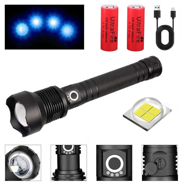 <p>When darkness falls, you need a light source that cuts through the night with absolute clarity—not a weak beam that leaves you fumbling. Our powerful LED flashlight delivers extreme brightness and precision zoom capability, transforming how you navigate low-light environments with confidence and control.</p><ul><li><strong>Extreme 9900000 Lumen Output</strong> — Military-grade LED technology projects a beam visible up to 500+ meters away, outperforming standard flashlights by 10x or more</li><li><strong>Intelligent Zoom Function</strong> — Seamlessly adjust from wide-angle flood lighting to concentrated spotlight mode without switching tools, adapting to any terrain instantly</li><li><strong>Rechargeable Battery System</strong> — Includes UltraFire 26650/18650 batteries and USB charging cable; eliminates disposable battery waste and saves hundreds annually on replacements</li><li><strong>Premium Aluminum Alloy Construction</strong> — Textured grip handle and reinforced reflector head withstand drops, water exposure, and extreme outdoor conditions without degradation</li><li><strong>Extended Runtime Performance</strong> — Single charge delivers 8-12 hours of continuous illumination depending on brightness mode, ideal for multi-day expeditions</li></ul><p><strong>Perfect for:</strong> Search and rescue operations, professional security patrols, wilderness camping expeditions, and emergency preparedness kits where reliability matters most.</p><p>Built from aerospace-grade materials with precision optics, this flashlight meets industrial durability standards while remaining portable enough for everyday carry.</p><p>✅ Fast shipping across Canada · 30-day returns · Secure checkout</p><p>Stock is limited—serious outdoor professionals are ordering now before the next seasonal rush.</p>