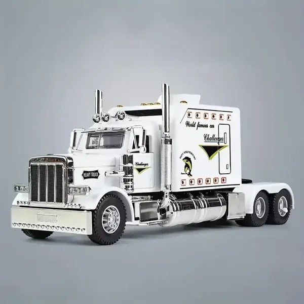 <p>Watch your child's eyes light up when they discover a realistic die-cast semi truck that actually moves, lights up, and makes authentic engine sounds. This isn't just another plastic toy—it's a premium 1:24 scale Peterbilt 389 model built for durability and interactive play that keeps kids engaged for hours.</p><ul><li><strong>Authentic Die-Cast Metal Construction</strong> — Heavy-duty metal chassis and body withstand rough play, drops, and years of collection-building without cracking or fading like cheaper plastic alternatives</li><li><strong>Pull-Back Motor with Realistic Movement</strong> — Wind it back and watch it zoom across floors, carpets, and outdoor surfaces with smooth, consistent speed that rivals battery-operated competitors</li><li><strong>Dual Light & Sound Effects</strong> — LED headlights and authentic semi-truck engine sounds activate during play, creating immersive truck-driving scenarios without requiring separate batteries or complicated controls</li><li><strong>Detailed Interior & Exterior Features</strong> — Openable doors, chrome accents, realistic tires, working staircase, and bumper details encourage imaginative play and collector appreciation for ages 4-8 and beyond</li><li><strong>Perfect Scale for Small Hands</strong> — At 1:24 scale, this model fits easily into toy boxes, backpacks, and display shelves while remaining large enough for safe, comfortable handling by young children</li></ul><p><strong>Perfect for:</strong> Birthday gifts for truck-loving boys, starter collectibles for young enthusiasts, classroom rewards, and siblings who want matching toy fleets for collaborative play scenarios.</p><p>Premium die-cast metal with plastic accents. No batteries required for pull-back action; light and sound features operate independently. Tested for Canadian toy safety standards.</p><p>✅ Fast shipping across Canada · 30-day returns · Secure checkout</p><p>Limited stock available—truck enthusiasts are snapping these up fast, so secure yours before they roll away.</p>