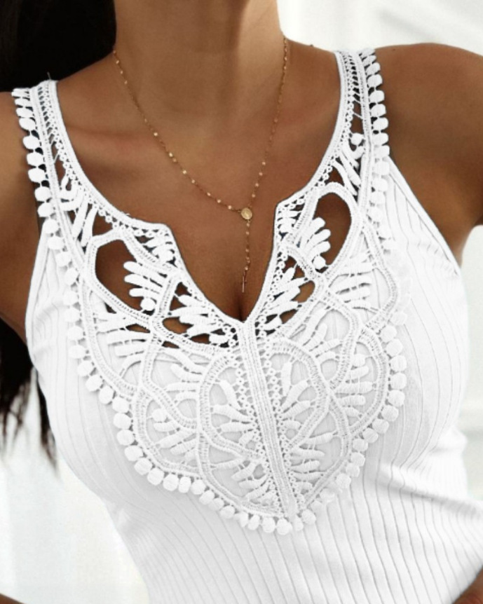 <p>Finding a versatile tank top that flatters your figure while staying comfortable all day is a challenge—but this slim-fit V-neck tank solves it with effortless style and breathable construction. Whether you're layering for work or wearing solo for casual outings, this piece delivers both confidence and comfort.</p><ul><li><strong>Flattering V-neckline with decorative lace trim</strong> — The elegant lace panel frames your neckline while the V-cut elongates your silhouette, creating a polished look that works for both casual and semi-dressy occasions.</li><li><strong>Slim-fit ribbed knit construction</strong> — Premium ribbed knit fabric hugs your curves in all the right places without restricting movement, offering a body-conscious silhouette that's modern and on-trend.</li><li><strong>Breathable cotton-blend material</strong> — The cotton-synthetic blend provides natural breathability for all-day wear while the stretch fibers ensure the tank maintains its shape through countless washes and wears.</li><li><strong>Armhole lace detailing</strong> — Delicate lace trim around the armholes adds feminine sophistication, transforming a basic tank into a statement piece worthy of showing off.</li><li><strong>Available in three versatile colorways</strong> — Choose from crisp white, sunny yellow, or soft light blue to match your existing wardrobe and personal style preferences.</li></ul><p><strong>Perfect for:</strong> Young professionals layering under blazers for the office, casual weekend warriors pairing with jeans, and fashion-forward individuals who refuse to compromise on style or comfort.</p><p>Crafted from a quality cotton-synthetic blend with reinforced seams and fade-resistant dyes, this tank top is designed to last. The ribbed knit resists pilling and maintains its shape season after season.</p><p>✅ Fast shipping across Canada · 30-day returns · Secure checkout</p><p>Stock is moving quickly—grab your favorite color before sizes sell out.</p>