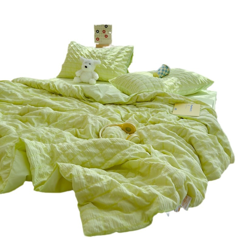 <p>Tossing and turning through hot summer nights? Our Summer Cooling Quilt is engineered to keep you comfortable when temperatures rise, delivering the perfect balance of lightweight coverage and superior breathability for restful sleep year-round.</p><ul><li><strong>Breathable Textured Fabric</strong> — Seersucker-weave construction promotes continuous airflow, reducing heat retention by up to 40% compared to traditional quilts</li><li><strong>Lightweight Double-Size Coverage</strong> — Thin profile (approximately 0.5 inches) provides adequate warmth without the suffocating bulk of standard quilts</li><li><strong>Temperature-Regulating Design</strong> — Light green and pale yellow colorways reflect heat, naturally cooling your sleeping surface throughout the night</li><li><strong>Included Pillowcases</strong> — Matching textured pillowcases complete the set, ensuring consistent comfort across your entire bedding ensemble</li><li><strong>Modern Minimalist Aesthetic</strong> — Clean lines and subtle texture appeal to contemporary bedroom décor while maintaining timeless appeal</li></ul><p><strong>Perfect for:</strong> Night sweats sufferers seeking relief, apartment dwellers in warm climates, and anyone transitioning between seasons who needs versatile layering bedding.</p><p>Crafted from premium-quality cotton-blend materials with reinforced stitching for durability through countless wash cycles. Hypoallergenic and machine-washable for easy maintenance.</p><p>✅ Fast shipping across Canada · 30-day returns · Secure checkout</p><p>Stock is limited—secure your cooling quilt before summer demand peaks.</p>